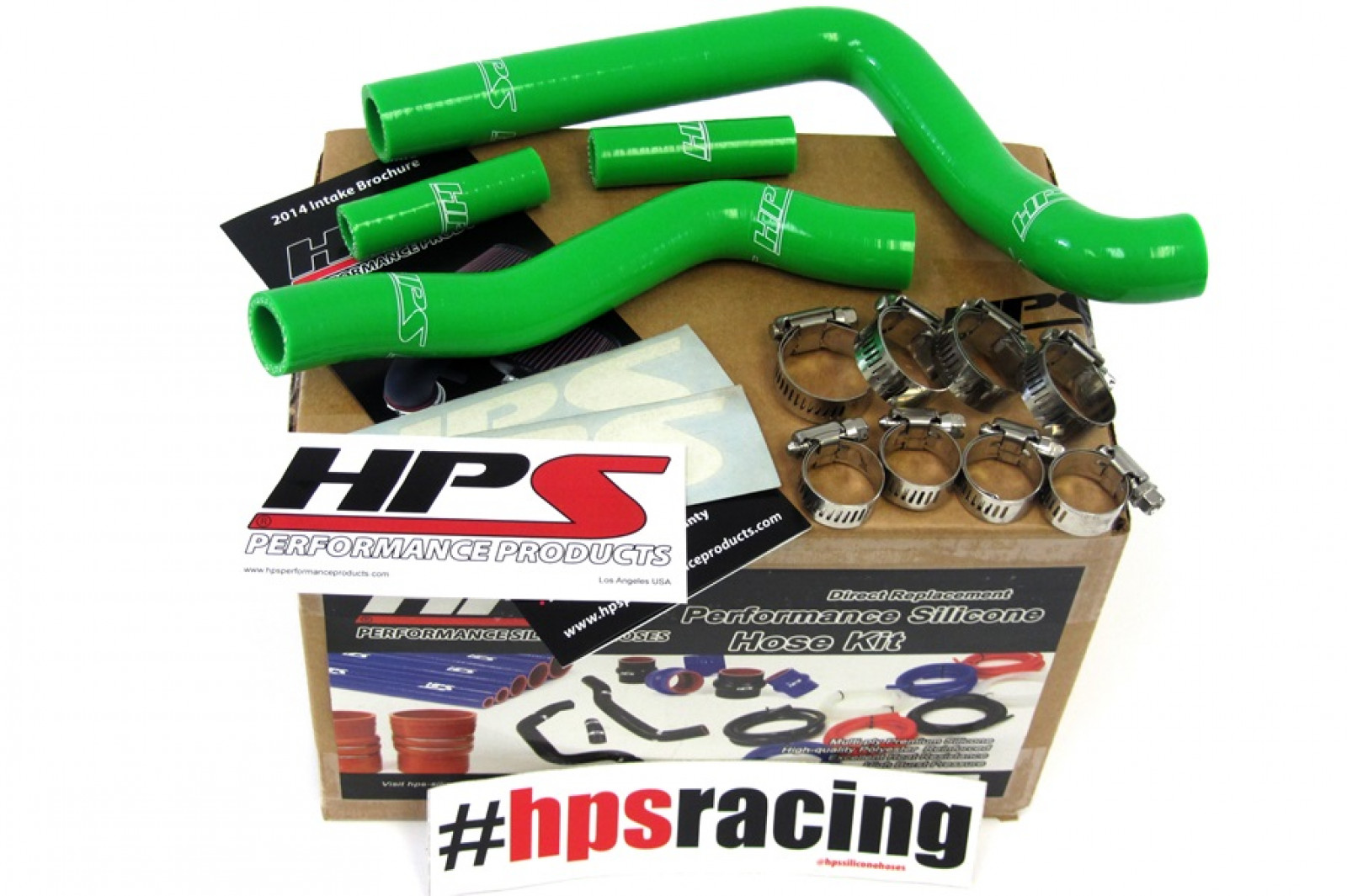 HPS Green Reinforced Silicone Radiator Hose Kit fits Kawasaki 05-08 KX250. Ideal replacement or performance upgrade for the OEM rubber hoses. Race proven design ensure the long lasting quality over the stock rubber hoses. Includes 100% stainless steel clamps for easy installation