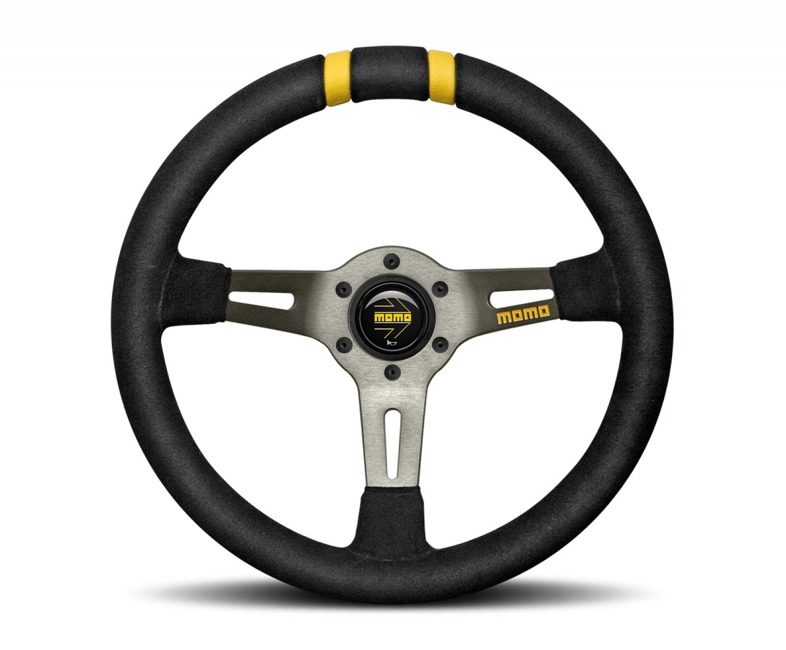 Black suede covered with 2 yellow centering stripes